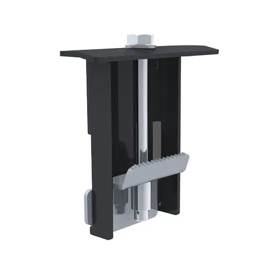 Aurinkopaneelin pulttikiristeinen päätykiinnike.